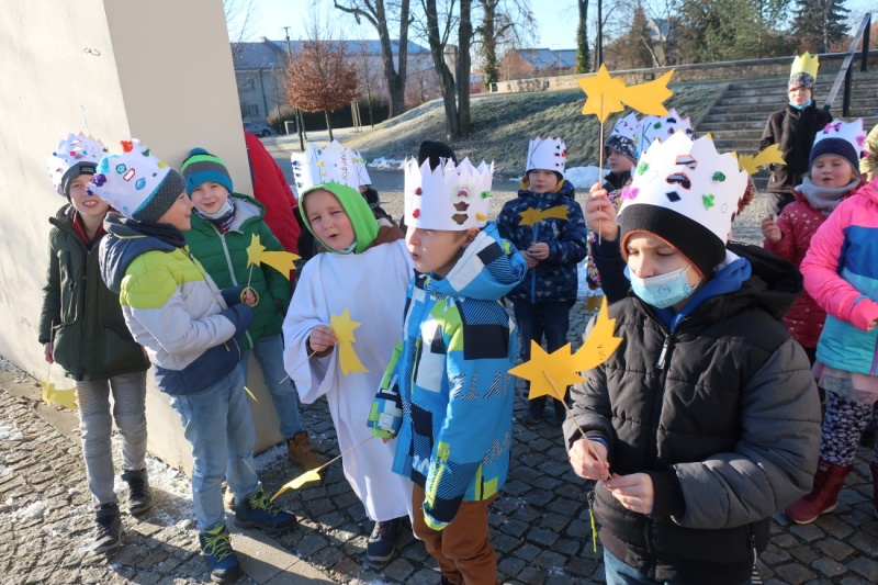 Obvykle chodí tři králové, to pro nás ale bylo málo… My jsme zaplnili náměstí velkým královským setkáním všech králů z 1. a 2. tříd. Společně jsme si zazpívali, vykoledovali i něco dobrého a vzájemně poobdivovali naše královské koruny…