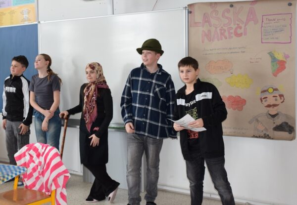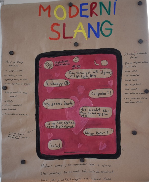 Účinkující se do svých prezentací opravdu ponořili naplno. Připravili svým spolužákům nezapomenutelné zážitky a nám všem již tradiční výtvarné výstupy ve formě plakátů, které letošní Den mateřského jazyka budou ještě dlouho připomínat v prostorách naší školy.