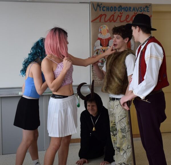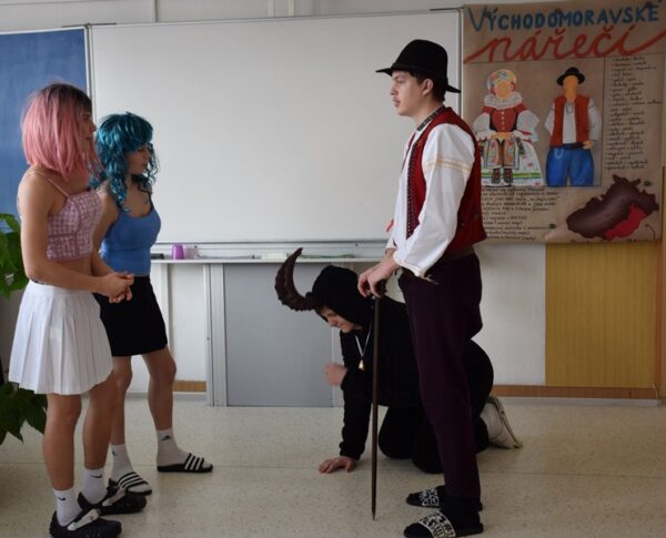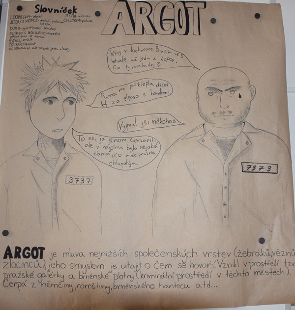 Formou velkolepých prezentací účinkující předvedli své dovednosti řečnické, herecké, komunikativní a provedli nás klikatými uličkami nespisovných útvarů naší krásné mateřštiny. Učebny se proměnily na páteční dopoledne v malé divadelní sály, ve kterých se vystřídalo všech 12 třídních kolektivů. Diváci si nepochybně přišli na své, protože se během jediného odpoledne stali odborníky na obecnou češtinu, slang myslivecký, rybářský, moderní a e-sport. Byla představena i velmi užitečná profesní mluva lékařská, takže odborné medicínské termíny nás již nemohou zaskočit. Nechyběl ani argot, který jakožto žargon společenské spodiny odjakživa přitahuje fajnšmekry češtiny. Diváci neváhali vstoupit přímo do pankrácké věznice. Ano, mezi trestanci se argot přímo líhnul. Žáci nezapomněli představit nejznámější nářečí – lašské, valašské, hanácké a brněnský hantec.