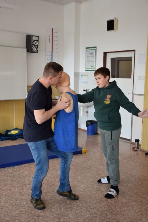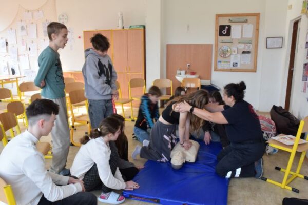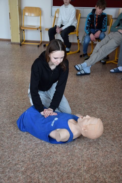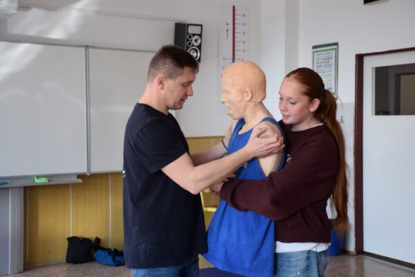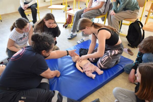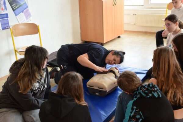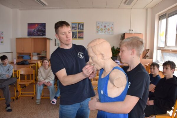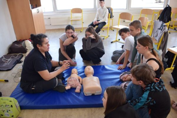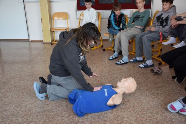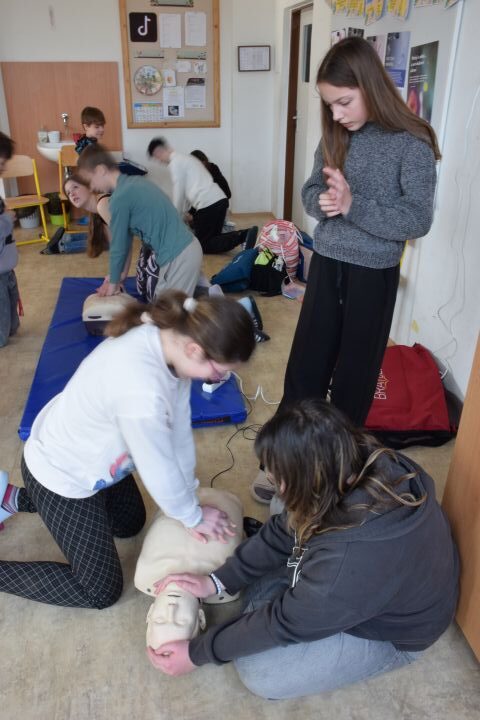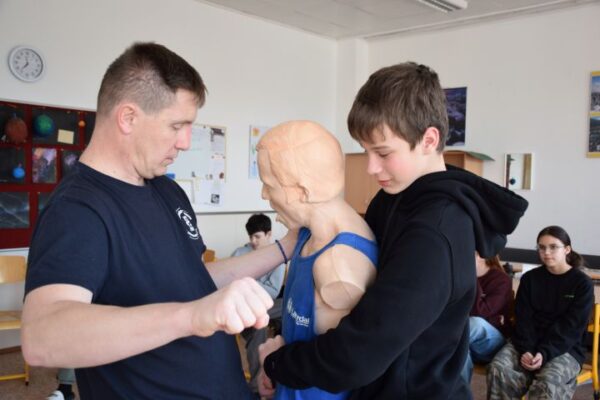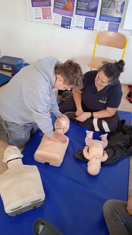 Zlatým hřebem programu byla nácviková resuscitace. Žáci si prakticky vyzkoušeli resuscitaci malého dítěte, dospělého i práci s AED (automatizovaným externím defibrilátorem). Každý se mohl zapojit – nejprve si techniku vyzkoušel vlastními silami a následně i s pomocí přístroje, který hlasově navádí při záchraně života.