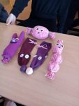 Právě znovuvyužití nepotřebných a leckdy i zničených kusů oblečení se stalo osudným Plýtvákovi. Naši žáci vyráběli hračky, koberečky, tašky, rukavice, obaly na květináče a ozdoby z oděvů i kusů látek. 6.A zhotovila z látkových kousků plastickou mapu světa a už nikdy nezapomene, jak vypadají světadíly. Fantazie neznala mezí. V některých třídách si žáci užili módní přehlídku a získali tak inspiraci pro maškarní bály i chvíle zábavy.