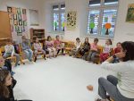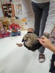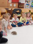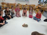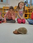 Dozvěděli jsme se spoustu zajímavého ze života tohoto živočicha a zlatým hřebem programu byl okamžik, kdy ježčí slečna přicupala mezi nás, smlsla pár červíků a nechala se od nás okukovat a sáhnout na bodlinky.