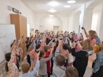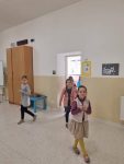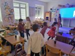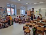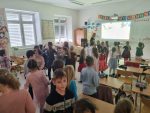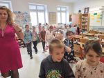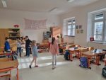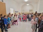 Při příležitosti rozdávání pololetního vysvědčení jsme si uspořádali v prvních a druhých třídách (na horním patře opravené budovy) kolaudaci našich nových tříd. Společně jsme se sešli na chodbě, zazpívali si, připili dětským šampaňským a pak už následovala návštevní hodinka. Děti si prohlédly třídy, setkaly se se svými kamarády na patře, zatančily si podle videí puštěných na nové interaktivní tabuli, prostě si užily nové prostory trošku jinak než jen při vyučování… Doufejme, že se nám v nových třídách bude dařit!