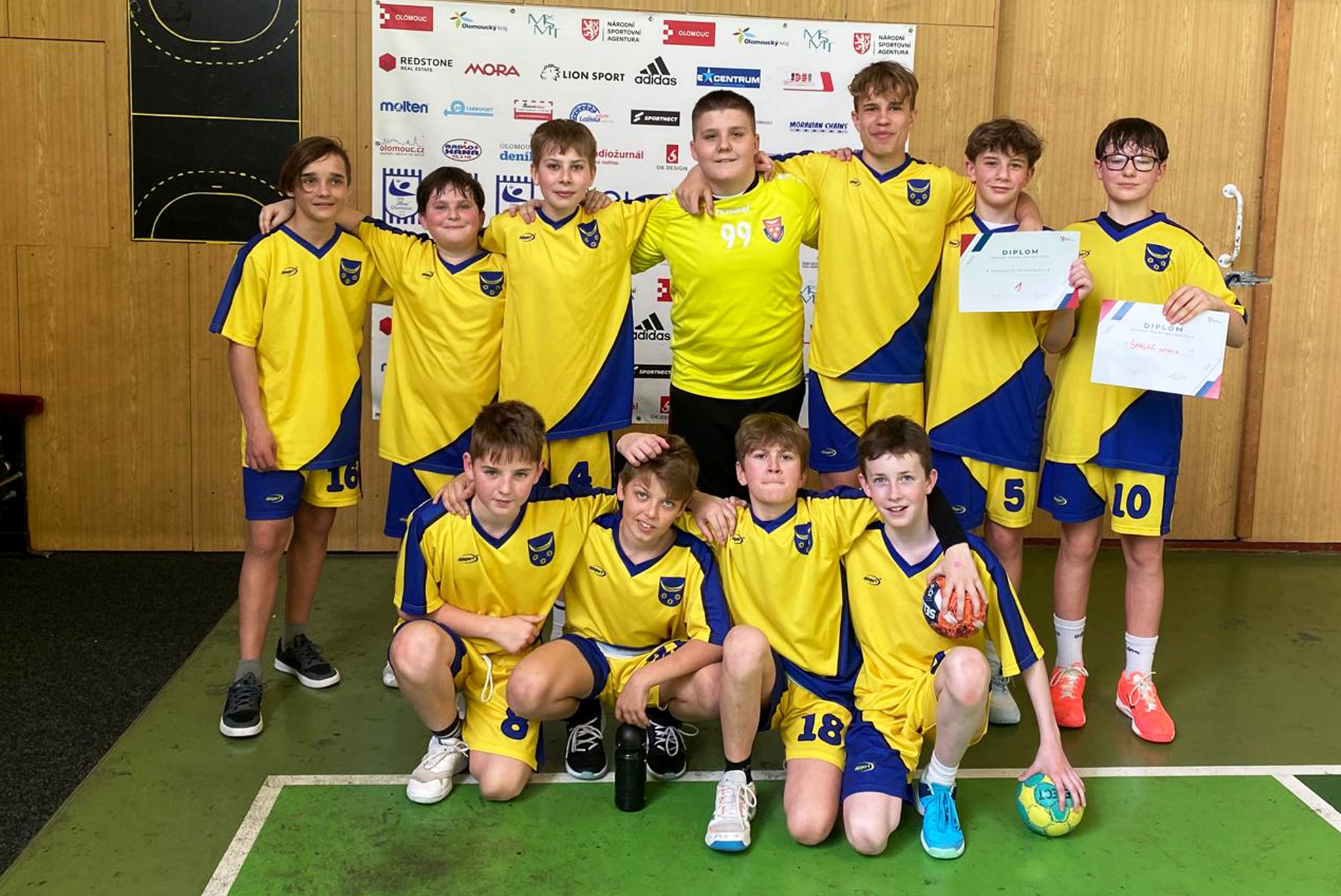 Na turnaji nás čekala dvě družstva z Olomouckého kraje, a to RG a ZŠ O. Wichterleho Prostějov a Gymnázium J. Škody Přerov. Náš výběr z 6. a 7. tříd oba tyto celky s přehledem porazil a zajistil si postup do Republikového finále v házené, které se bude konat 15.-17.5. 2024 v Liberci.