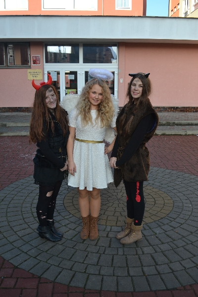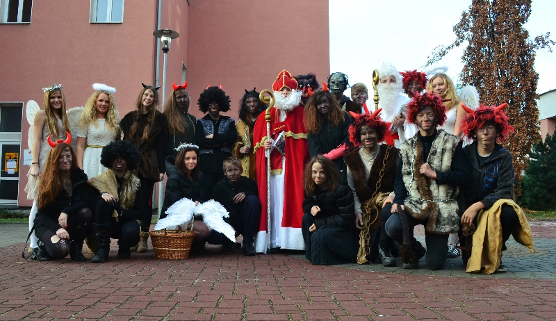 Jako každoročně, tak i letos všechny děti na prvním stupni základní školy i v mateřské školce netrpělivě očekávaly ve třídách návštěvu Mikuláše, andílků a čertovských pekelníků z devátých tříd (9.A obstarala nadílku na 1. stupni a 9.B ve školce). Největší obavy se jistě týkaly toho, zda v Knize hříchů bude opravdu zaznamenáno všechno zlobení.
