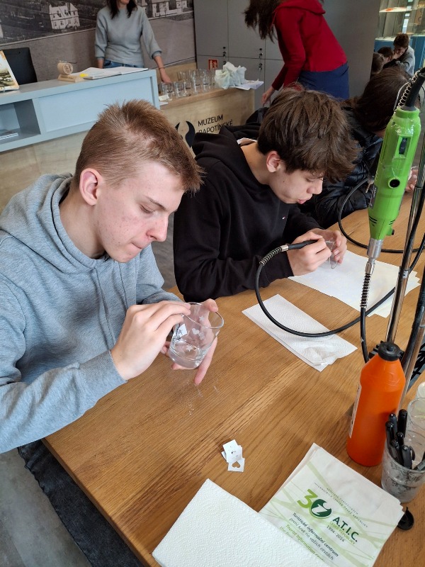 Dne 8.dubna, třída 8.B v rámci zeměpisu navštívila Rapotín, přesněji muzeum rapotínské sklárny. Prohlédli jsme si muzeum sklárny, kde nám pan průvodce velmi poutavě povyprávěl o historii sklárny a výrobcích, které tu dlouhá desetiletí vznikaly.  Sami jsme si mohli vyzkoušet práci brusičů skla, každý z nás si vybrousil skleničku dle vlastní fantazie. Při venkovní pátrací hře jsme navštívili místa spojená se sklárnou a za správně vyluštěnou tajenku jsme ve sklárně dostali pěknou odměnu.  A protože jsme luštili poměrně rychle, zvládli jsme dojít do Velkých Losin a ochutnat tamní vyhlášené pralinky.