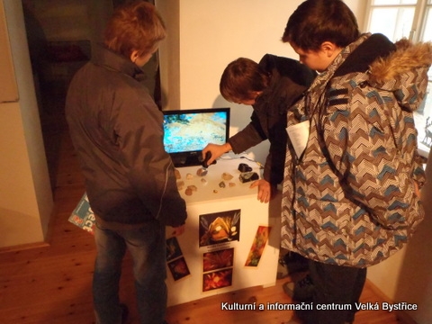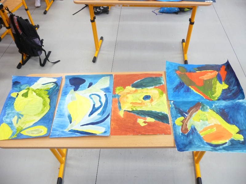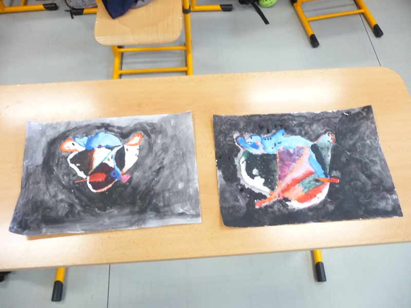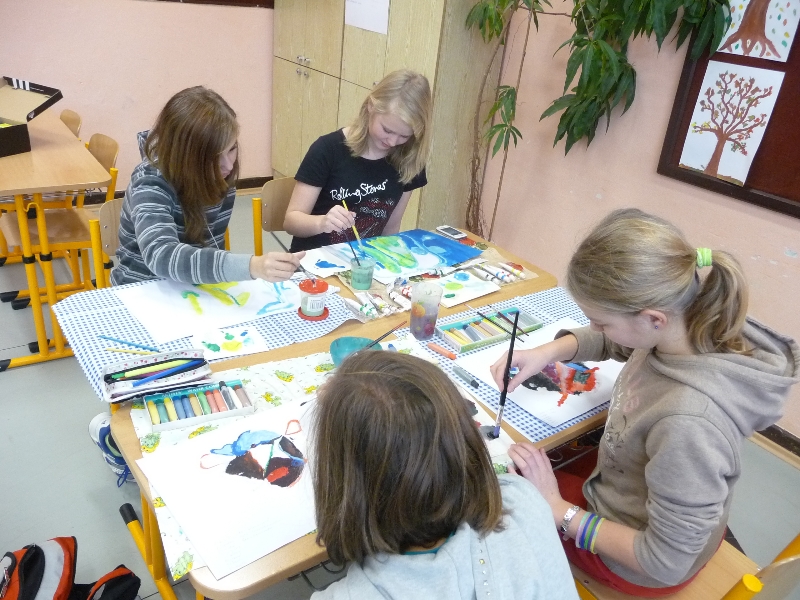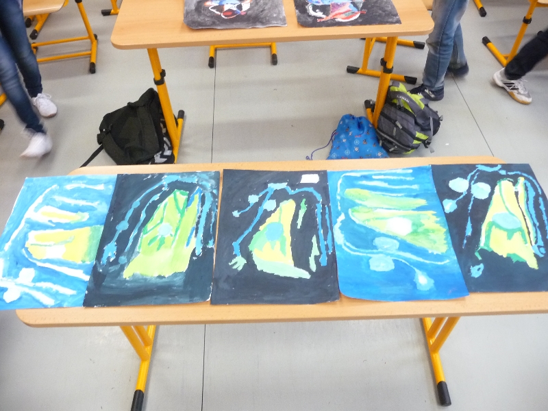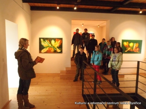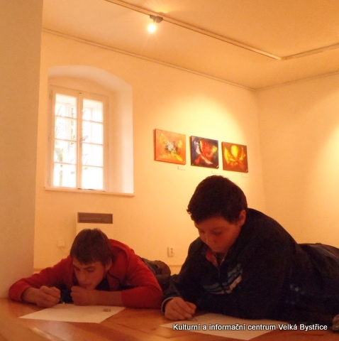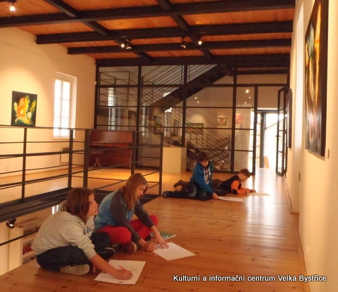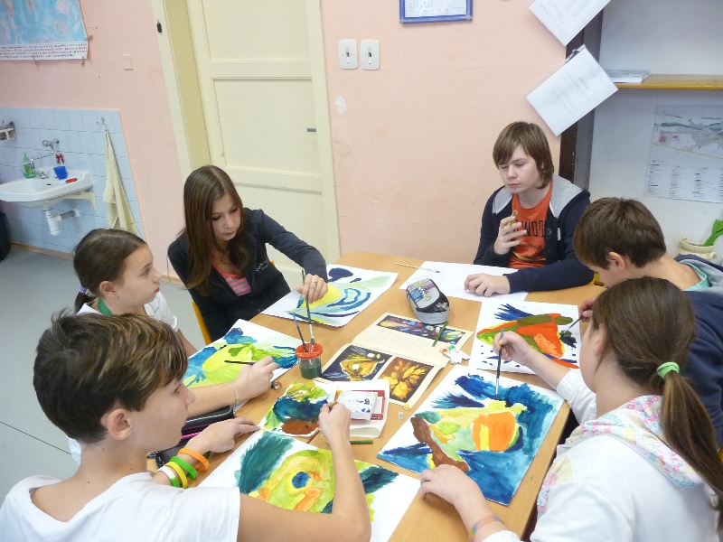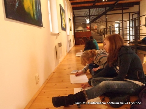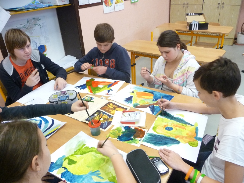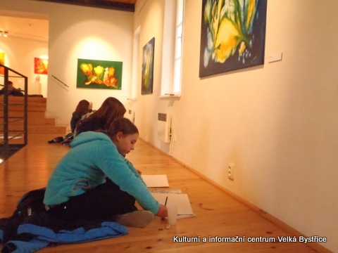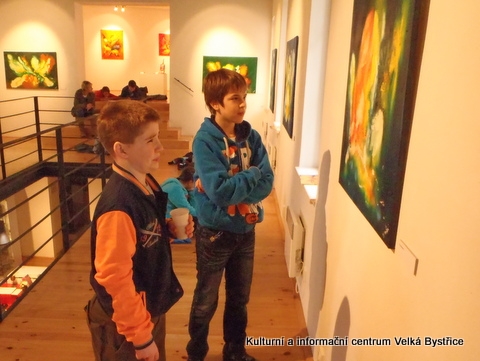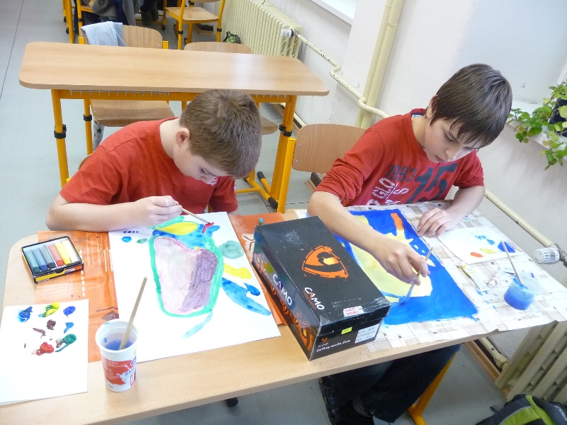 Jelikož jsme zjistili, že Galeriezet uspořádala krásnou výstavu Renaty Dvořákové nazvanou „Inspirace kameny“, neváhali jsme a tuto výstavu navštívili. Dětem byly k dispozici kameny a mikroskop, kterým si mohly prohlédnout strukturu nerostů a následně také shlédnout autorčiny obrazy. Poté si pokusily podobné abstraktní obrazy namalovat. Zabralo nám to sice trochu více času, ale výuka výtvarné výchovy se tak stala zajímavější. Za spolupráci děkujeme paní Žbánkové, která byla velice ochotná a nápomocná.