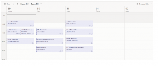 Sledujte, prosím, kalendář v Teamsech, kde je k vidění rozvrh on-line výuky. Současně je zadávána na www stránkách školy i samostatná domácí práce.