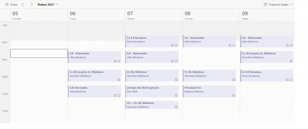 Sledujte, prosím, kalendář v Teamsech, kde je k vidění rozvrh on-line výuky. Současně je zadávána na www stránkách školy i samostatná domácí práce.