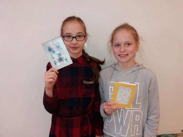 Žáci 6.A vyráběli ve výtvarné výchově 3.11. pro projekt Erasmus + vánoční přání. Přáníčka byla dvojího druhu, jedna otevírací, kam v konverzaci s p. uč. Kolářovou psali anglický text, na druhém přáníčku bylo nakreslené cukroví a nad ním anglicky napsaný recept.