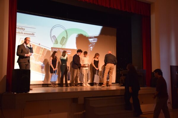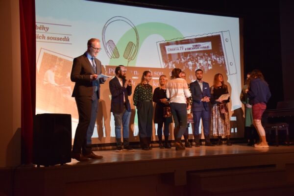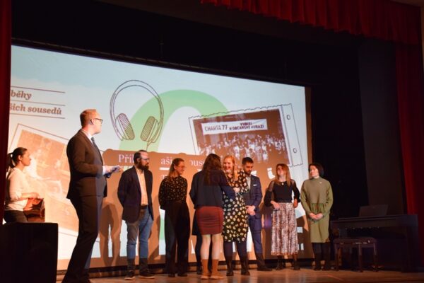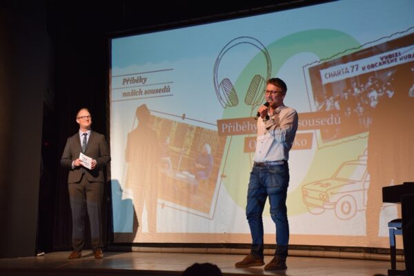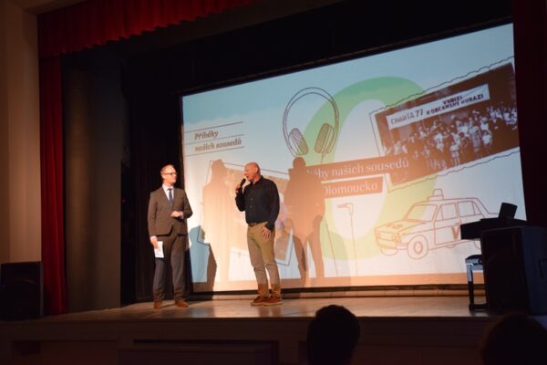 Ve středu 18. března 2026 se Kulturní dům Nadační ve Velké Bystřici stal již podruhé zázemím vzdělávacího projektu Příběhy našich sousedů Olomoucko neziskové organizace Post Bellum. Konala se zde závěrečná přehlídka žákovských prezentací, které nám dovolily nahlédnout do sedmi neobyčejných lidských osudů. Týmy žáků osmých a devátých tříd z šesti škol Olomoucka si pod vedením svých učitelů vyzkoušely práci novinářů a rozhlasových či televizních dokumentaristů. Žáci si našli ve svém okolí pamětníka, natočili jeho vzpomínky, zdigitalizovali fotografie, propátrali osobní i veřejné archivy a vytvořili medailonek, reportáž či jiný typ zpracování životního příběhu osobnosti. Týmy vytvářely prezentace několik měsíců. Volný čas byl v této době zaplněn nasloucháním příběhů, vyhledáváním dobových archiválií, chronologickým sestavováním faktů, nácvikem vystoupení, ale také prací ve skutečném rozhlasovém studiu. Přitom si velmi nenápadně žáci vytvořili se svým pamětníkem vztah plný úcty k životu. Lidské osudy jim byly svědectvím radostí i strastí, tvrdé práce, nebezpečí, někdy i nespravedlnosti. Nad vším se ale vznáší optimismus, láska a víra v dobro.