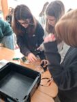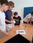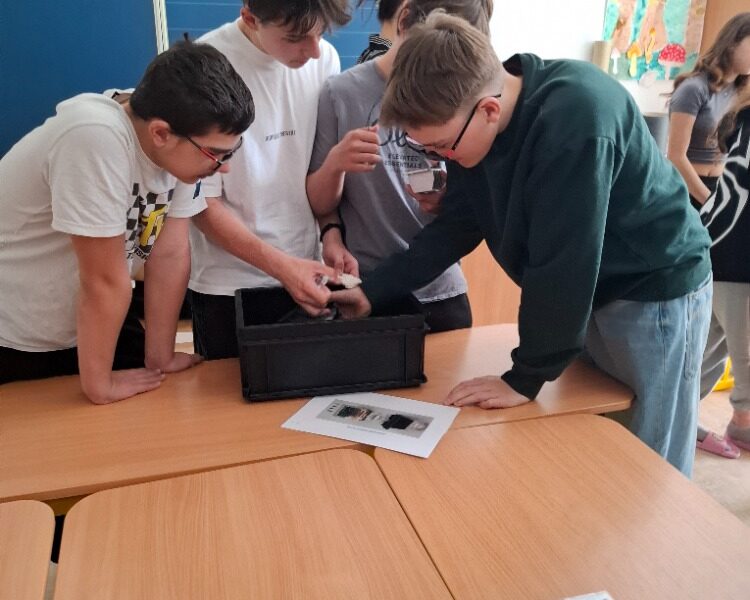 V druhé části programu si žáci ve skupinkách formou workshopu na jednotlivých stanovištích vyzkoušeli některé postupy samotné výroby se skutečnými součástkami.
