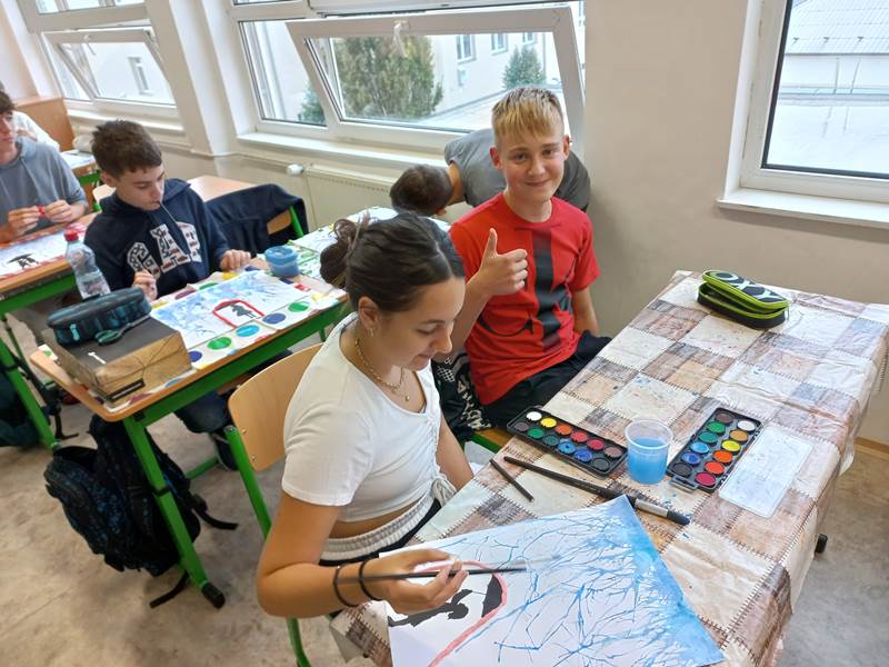 Ve středu 14. 9. 2022 měla třída 8.C poprvé odpolední vyučování – výtvarnou výchovu. Za okny bubnoval déšť a vytvořil tak inspirativní atmosféru pro tvorbu žáků. Všem patří pochvala za povedená díla, která brzy ozdobí nástěnky našich chodeb.