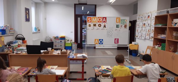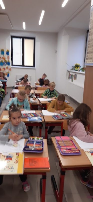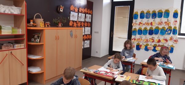 Děti si na novou třídu rychle zvykly a určitě se jim v ní líbí.. Pilně se učíme, ale také máme prostor pro hry, zábavu a tvoření. Zvládli jsme další 2 písmenka a také děti vytvořily krásné podzimní skřítky z listů, které si samy nasbíraly při procházce v parku. Často se dostaneme ven – do parku, na malé hřiště i jen tak k zámku a k amfiku, což je velké plus.