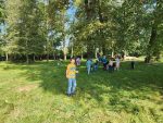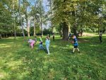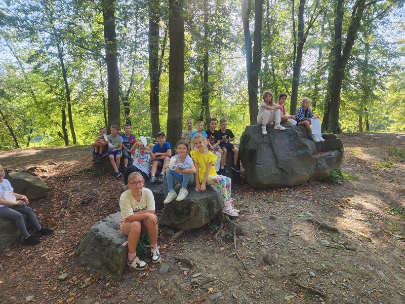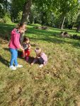 Krásné podzimní dny, které nám letošní příroda nadělila, jsme využili k učení venku. Prvouku, ve které jsme si ukazovali různé typy krajiny u nás v Bystřici a jejím okolí a také jsme poznávali stromy krajiny lesnaté, jsme strávili vycházkou kolem rybníků až na Skalku. Výtvarku jsme si zase udělali v parku a věnovali se v ní land artu.