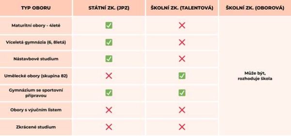 Důležitá výjimka: U uměleckých oborů se jednotná zkouška NEKONÁ (kromě gymnázia se sportovní přípravou).