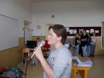 Bronz si z naší soutěže odnesla Klárka Čtvrtlíková ze 7.A, když překvapila publikum dokonale nacvičeným All of me. O třetí místo se interpretka podělila s chlapeckým duem ze 7.A představeným Radimem Rochovanským a Františkem Krylem. Kluci předvedli klasického Jožina z bažin a oslnili porotu i publikum.