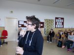 Zlato si vybojovaly žákyně 9.A Eva Peltonenová a Anička Vondrů dokonale profesionálně předvedeným klipem Counting stars. O příčku nejvyšší se s dívkami podělil Mirek Kryl z 8.A, který precizně zazpíval hit Patrika Krajčíra My dva.