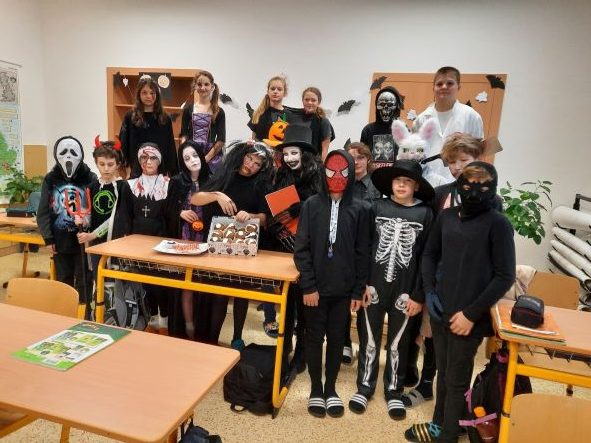 Ve středu 2.11. byla celá škola tak trochu strašidelná. Naši třídu jsme si vyzdobili, masky u nás ve třídě byly opravdu děsivé. A cukroví bylo naprosto úžasné, děkujeme všem šikovným maminkám! Všichni jsme si celý den pořádně užili.:-)