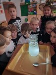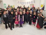 Před podzimními prázdninami nepřišly do školy děti, ale příšerky, strašidla a podobná havěť. A užili jsme si to parádně. Získávali jsme přísady do lektvaru, který jsme si potom i vyrobili. Na chodbě byla přehlídka strašidel – některá byla tak příšerná, že se jich bála i ostatní strašidla. Zpívali jsme, tančili, vyráběli, dozvěděli jsme se, proč se slaví halloween a Dušičky. A ty svačinky!!! Koukněte se na fotky.
