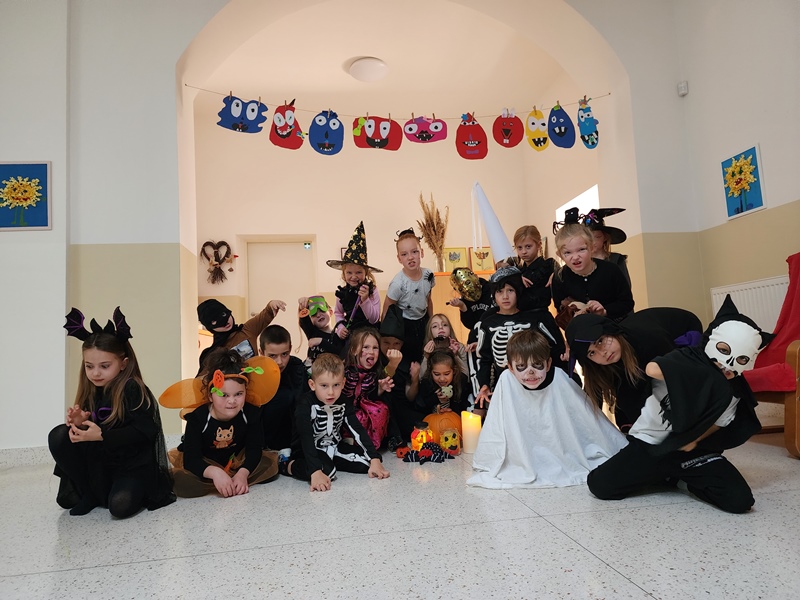 Před podzimními prázdninami nepřišly do školy děti, ale příšerky, strašidla a podobná havěť. A užili jsme si to parádně. Získávali jsme přísady do lektvaru, který jsme si potom i vyrobili. Na chodbě byla přehlídka strašidel – některá byla tak příšerná, že se jich bála i ostatní strašidla. Zpívali jsme, tančili, vyráběli, dozvěděli jsme se, proč se slaví halloween a Dušičky. A ty svačinky!!! Koukněte se na fotky.
