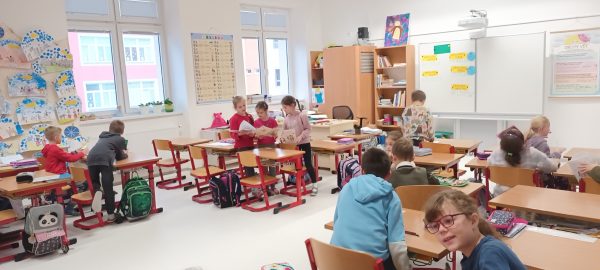 Naši novou třídu si užíváme už třetí týden a moc se nám v ní líbí. Máme krásnou světlou třídu se skvělou interaktivní tabulí, kterou ve vyučování i o přestávkách hodně využíváme.