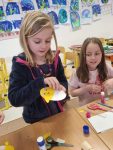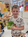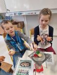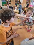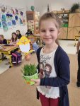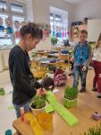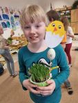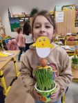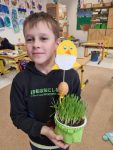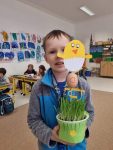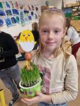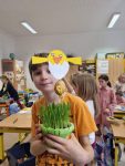 Krátký předvelikonoční týden u nás ve třídě byl opravdu předvelikonoční. V dílničkách jsme si vyzdobili květináč s osením, a také jsme si vyzkoušeli, jak náročné je zdobit kraslice voskovou technikou (druhá technika pak už byla jen jednoduše sypáním). V matice i češtině jsme vypracovávali omalovánková vajíčka. A ve středu nás pak čekalo celodenní velikonoční putování po naší budově, kde byly v prvních i druhých třídách připraveny pro děti různé vědomostní, hudební nebo výtvarné úkoly.
