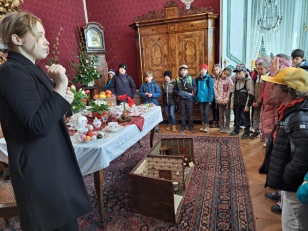 Děti z 1. – 3. tříd v minulém týdnu navštívily zámek v Náměšti na Hané. Každý rok tu totiž otevírají sezónu velikonočním pohádkovým programem. Zámek je krásně vyzdobený, prohlídka je spojena s pohádkou a nechybí ani výtvarné dílničky a minijarmark. Prostě stojí za to se tam vypravit.