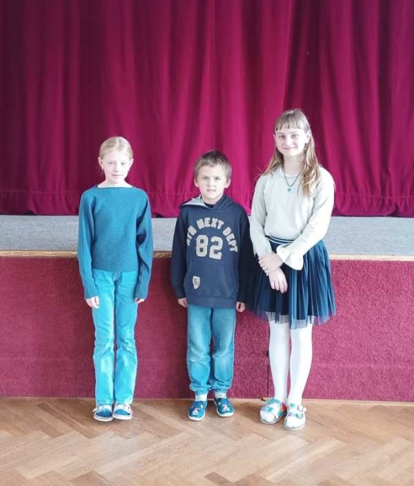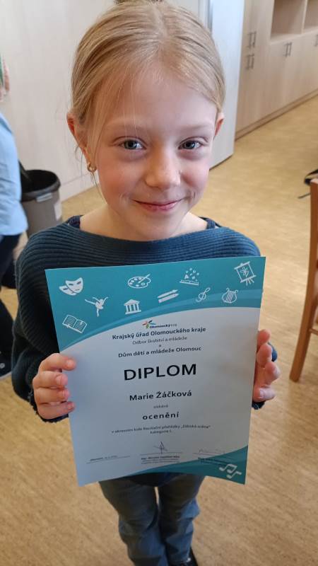 Ve čtvrtek 14.3.2024 proběhlo v Domě dětí a mládeže v Olomoci okresní kolo soutěže mladých recitátorů Dětská scéna. Naše škola vyslala tři reprezentanty z prvního stupně. V nejmladší kategorii Jendu Šustka (3.B) a Mařenku Žáčkovou (3.A) a v druhé kategorii Bětku Kultanovou (5.A), kteří u nás ve třídních kolech soutěže byli prostě nejlepší. A že se neztratí i mezi recitátory z celého okresu, dokázali všichni tři. Překonali trému vystoupit před tolika cizími lidmi, dali do přednášení celé své “herecké” umění a bylo z toho první místo a postup do krajského kola pro Jendu a pro Mařenku zvláštní ocenění. Jsme moc pyšní a gratulujeme!