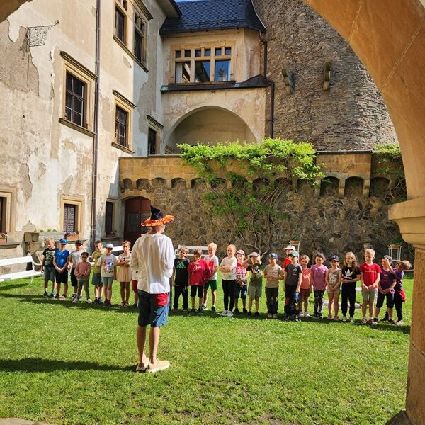 Tak máme výlet, na který jsme se dlouho těšili, za sebou. A měli jsme štěstí, protože se nám moc vydařil. Díky krásnému počasí jsme si na hradě ve Šternberku dobrodružný program inspirovaný Harrym Potterem mohli opravdu užít. Soutěžní týmy absolovovaly přímo na hradních nádvořích a v parku soutěž. Ty tři nejlepší pak mohly do hradní věže otevřít truhlice s pokladem.