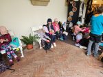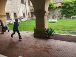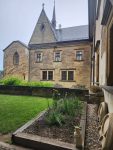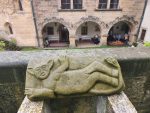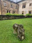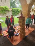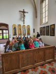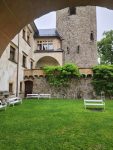 Na cestu od autobusu na hrad jsme sice museli obléct pláštěnky, ale potom už jsme je nepotřebovali. V hradě neprší a na cestu zpět už se počasí umoudřilo. Tak jsme si obědy od našich maminek mohli vychutnat na nádvoří.