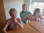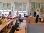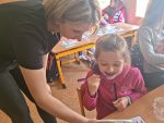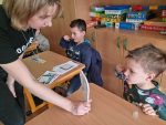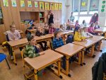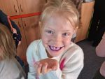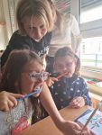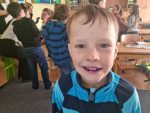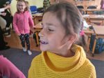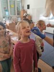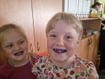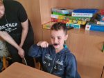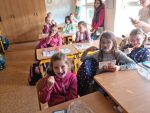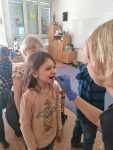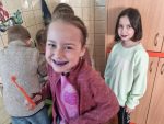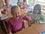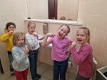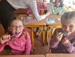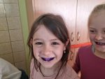 … budeme mít, když si je budeme čistit tak, jak nás učily studentky zubní hygieny. Vyzkoušeli jsme si správný postup a pomocí “fialové barvičky” i to, jestli nám někde nezůstává zubní plak. Nakonec jsme odešli zpátky do třídy i s malými dárečky…