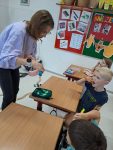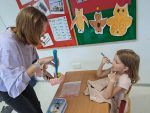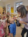 Hned v září k nám do prvních tříd přijely budoucí paní zubařky s programem péče o zoubky. Prvňáčkům mléčné zoubky padají a mění se na stálý chrup, o to více je důležité se o ně správně starat.